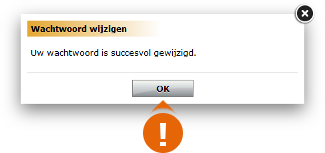 Uw nieuwe wachtwoord wordt meteen doorgevoerd. Daarna verschijnt er een nieuw venster met onderstaande mededeling. Klik op OK om het venster te sluiten. Uw wachtwoord is nu gewijzigd.