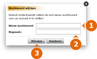 Er verschijnt een nieuw venster. Hier kunt u uw wachtwoord wijzigen door uw nieuwe wachtwoord tweemaal in te voeren. Klik daarna op Wijzigen.